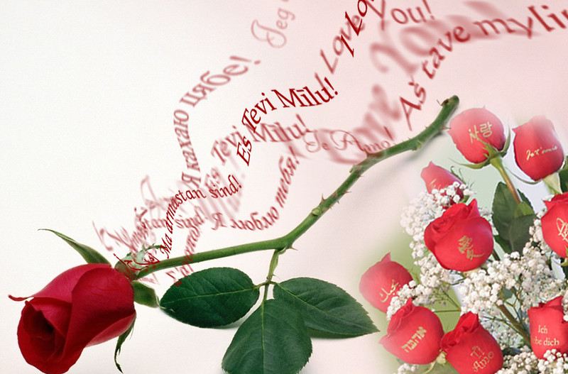 Oriģināla Valentīndienas dāvana - 11 Sarkanas Rozes ar uzrakstiem uz ziedlapiņas "Es Tevi Mīlu" 11 dažādās valodās - uz katras rozes uzraksts citā valodā.